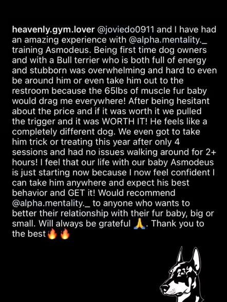 Ready to take your dog's training to the next level? Click the link below and complete the questionnaire which helps us get to know you and your dog better. Once reviewed, a member of Alpha Mentality will contact you.